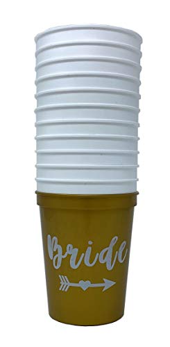 Bride Tribe Bachelorette Party Cups - White & Gold - Perfect Bachelorette Party Decorations for Weddings, Bridal Showers, and Engagements 16oz - Set of 12 Stadium Cups